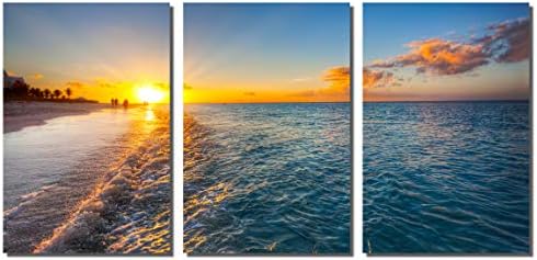 Mar playa gran moderna 3 paneles de paisaje de impresion de lienzo pared arte enmarcado y estirada galeria envuelto para decoracion del hogar.