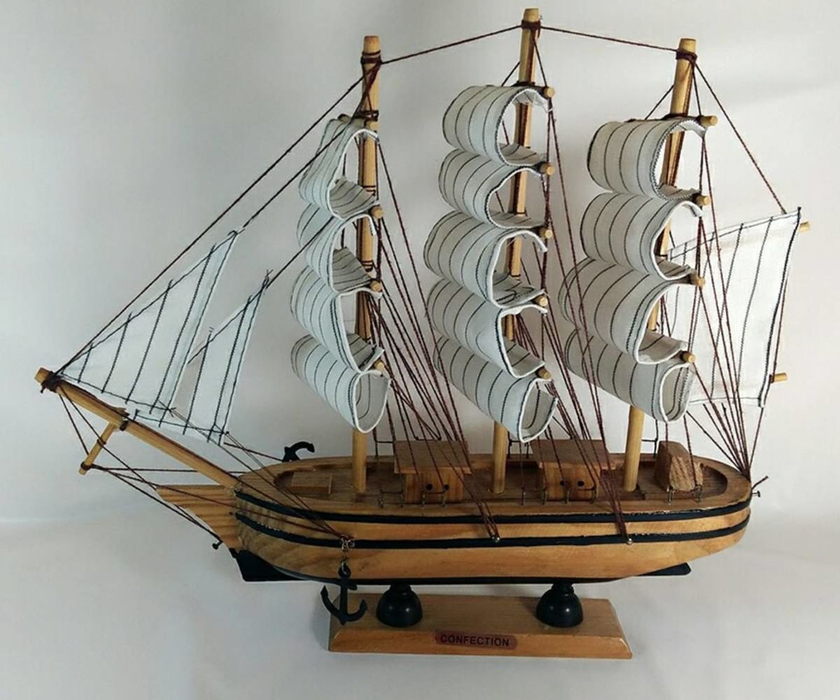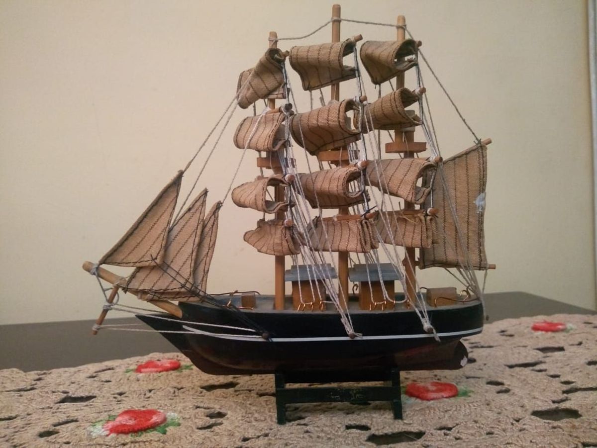 Barco a vela miniatura madeira decoracao berkat sku 19631.