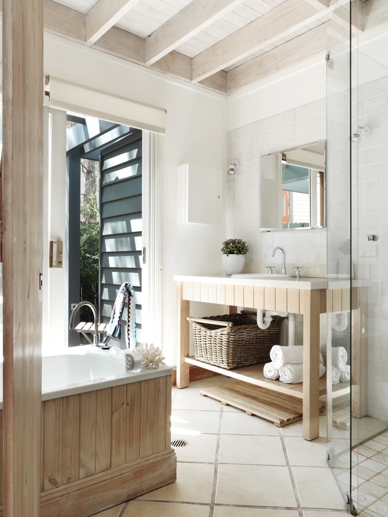 Beach house interior bathroom. Wooden or stone flooring and cute but uncluttered accessorising. The 5 bedroom 55 bath beach home is located just blocks from the ocean in bethany beach de with a sophisticated beach vibe. For the owners of an australian beach house designing a bathroom that is suitable for the entire family is at the top of their priority listthey wanted a beach bathroom designs that will produce a lively and fresh but also allow the uses of modern bathroom featuresbeautiful beach bathrooms use marble that gives luxurious look or natural limestone that captures the feeling of oceans and. The penny tile floor feels like smooth soft.