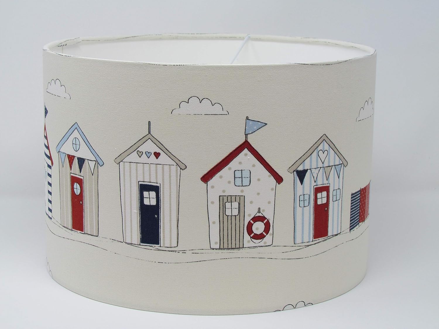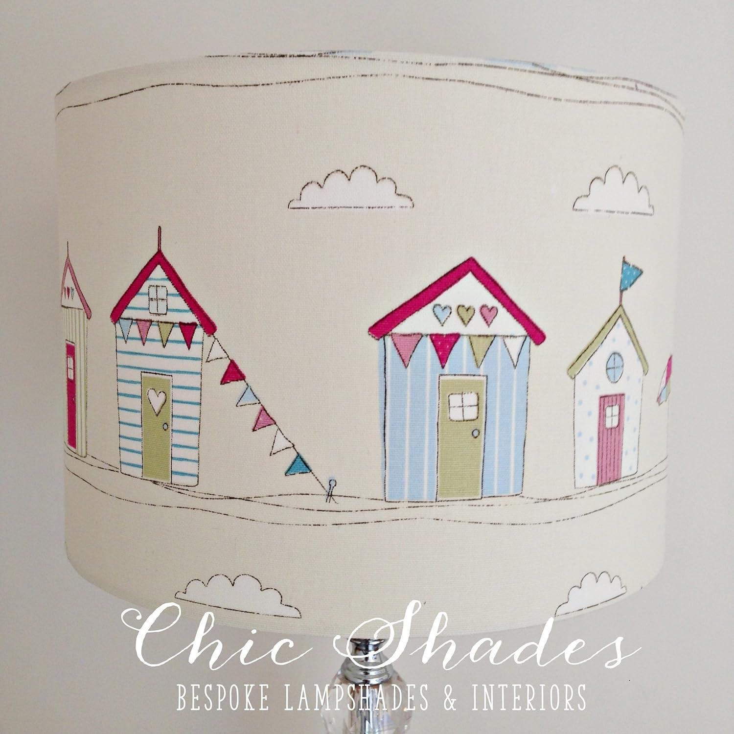 Handmade lampshades are made to order using your choice of vintage and new fabrics i make these lampshades to order and usually post within 10 business days of receiving your order longer if fabri. Beach hut pink lampshade from 1399 beach hut red blue cushion from 1300 beach hut red blue lampshade from 1399 cowes sailing boat lampshade 1799 sold out fisherman amble shell lampshade from 1799 fly away bird lampshade duck egg blue from 1799 fly away bird lampshade grey. A beautifully handmade lampshade featuring beach hutsthis beach hut lampshade is part of joannas brighton range which was born from her love of architecture and cities capturing their unique culture and style within her designs.