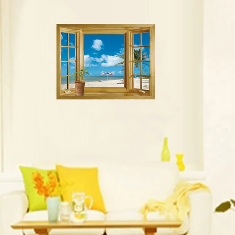 Strand muur sticker 3d venster tropische kust muur sticker voor woonkamer en slaapkamer kust kunst aan de muur voor kinderen nursery kinderen decoratie 164.