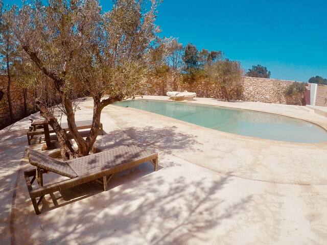 A tuscan style house boasting a beach entry pool with a jacuzzi and a rock waterfall feature. It can also work for a rustic pond like pool design. The block flooring in natural stone finish around the pool is the key which creates a rustic overall look. Chic natural decor emmahomeinfo.