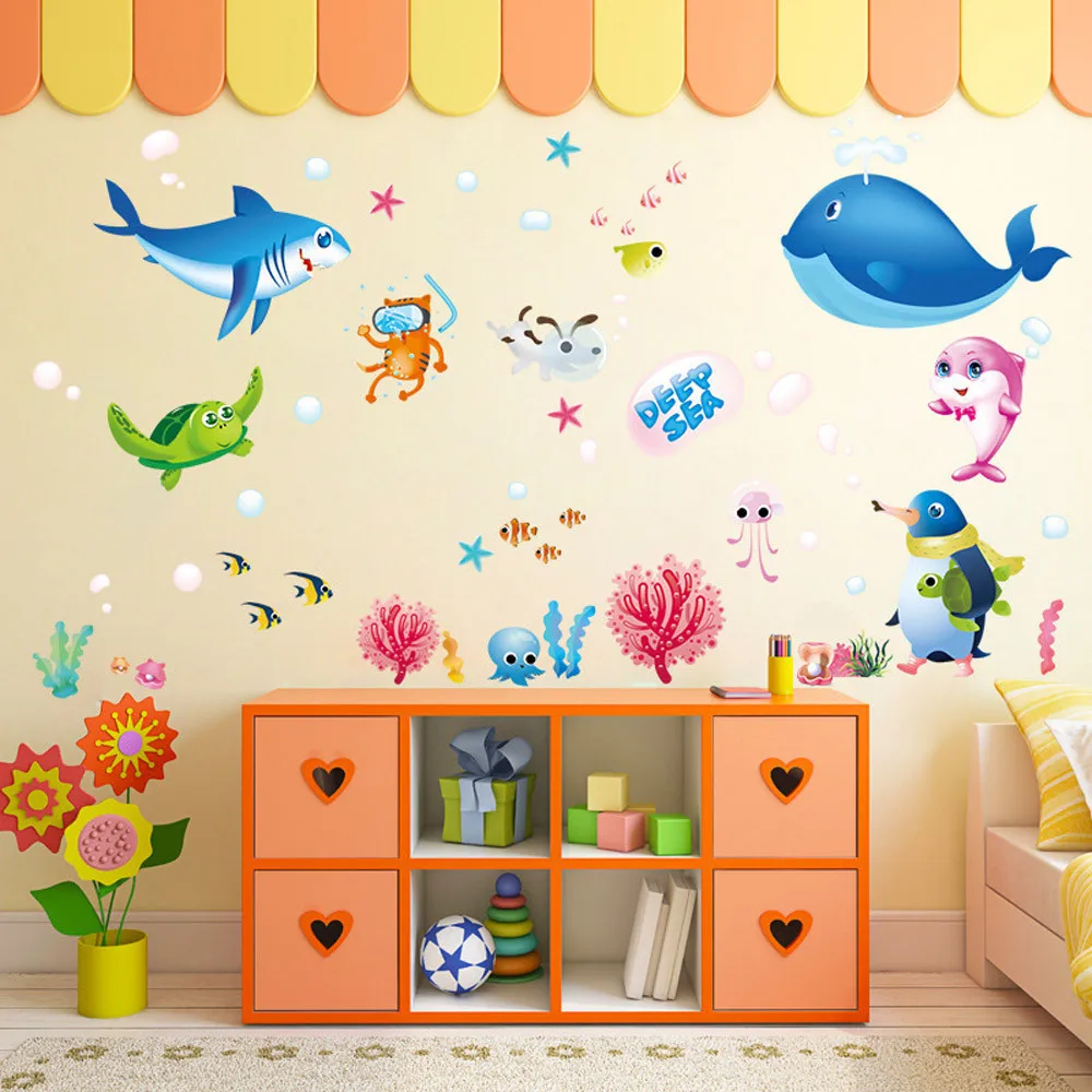 Undersea childrens wall decor easy diy with neutral wall decals ideas.