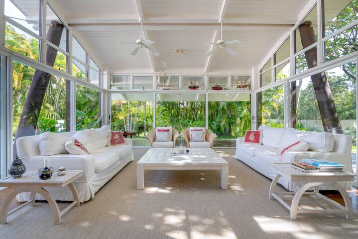 Praia da barra da tijuca. O projeto de quarto de solteiro de idalia daudt tem tons de azul e chinelos com a cara da casa de praia. Casa principal primeiro pavimento. Jardim piscina solarium varanda campo de futebol society.
