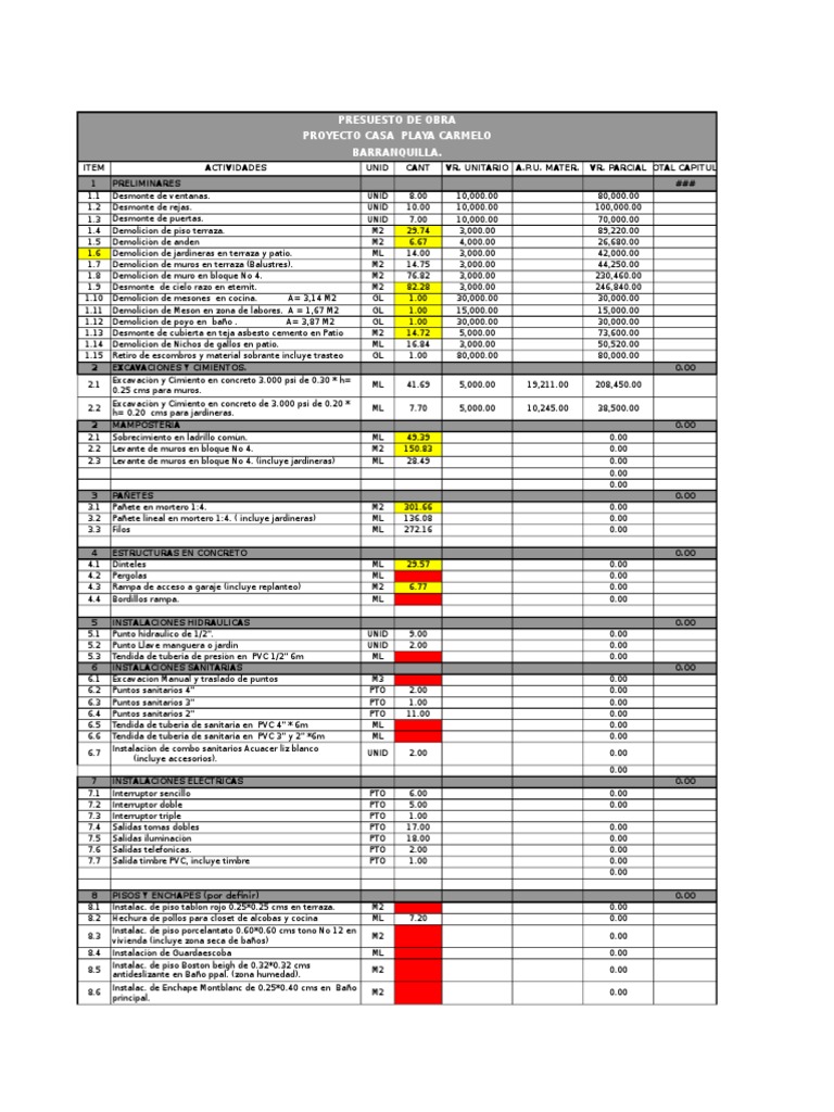 El costo de mano de obra en amarillo se refiere a la cantidad designada para el contratista o maestro de obra. En este caso le agregaremos un costo por el uso de nuestras instalaciones a parte del hospedaje. Es un hostal de mediana categoria pero esta muy limpio.