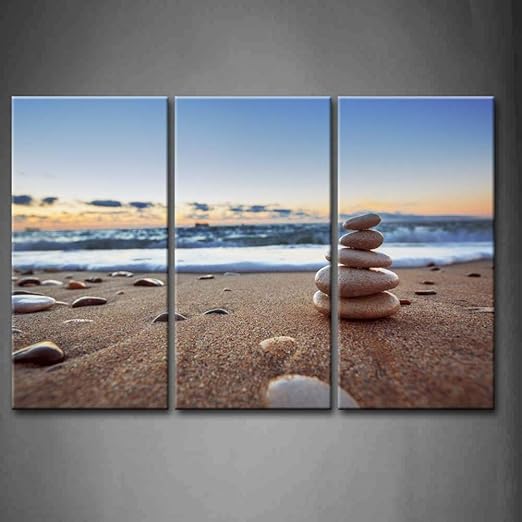Wieco art romantico playa tema zen stone moderno arte giclee lona contemporaneo abstracto mar playa imagenes de paisaje impresion sobre lona arte de la pared para la decoracion del hogar p4r1 x 1 02 5050.