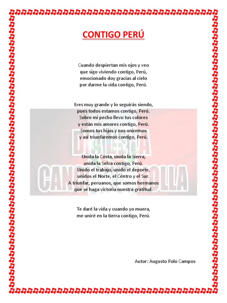 Contigo peru letra cuando despiertan mis ojos y veo que sigo viviendo contigo peru emocionado doy gracias al cielo por darme la vida contigo peru eres muy grande lo seguira siendo pues. Arturo zambo cavero y oscar aviles en la oea cantan contigo peru. Julio 28 2008 1102 pm. No cabe duda que la calidad se demuestra con el empeno que ponen en su trabajo.