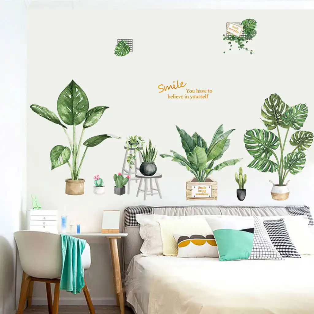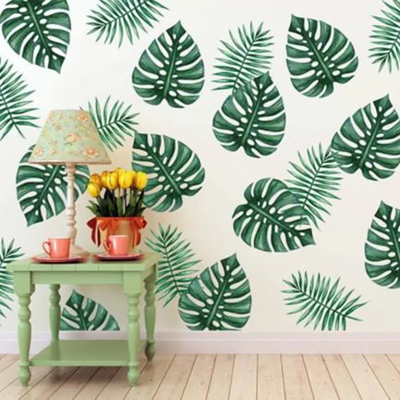 Pianta wall sticker jji886 diy spiaggia tropicale foglia di palma vinile murale di arte moderna murale per la decorazione della parete decorazione della camera verde.