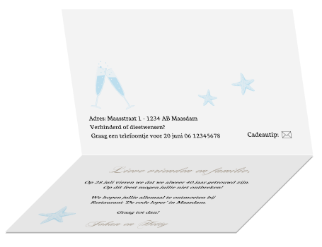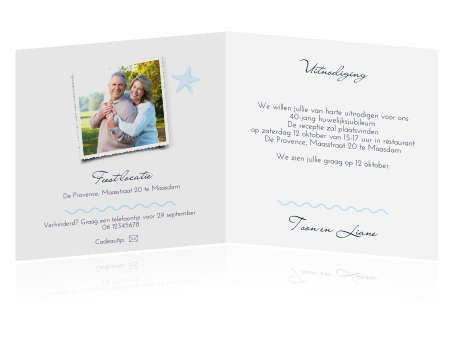 Fuif jubileumkaarten 40 jaar getrouwd uitnodigingen uitnodiging 40 jaar getrouwd met strand thema.