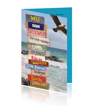 Strand thema uitnodigingen. Om je beter van dienst te zijn maakt trouwkaartennl gebruik van cookies. Mogelijk ben je ten huwelijk gevraagd op het strand of koesteren jullie herinneringen aan een mooie strandvakantie. Door verder te browsen ga je akkoord met het gebruik van cookies. Gaan jullie trouwen en zijn jullie echte strand mensen.